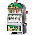 Test your luck and see if you're able to land the huge jackpot. The slot machine mimics the real sound and lights just as the real slot machine played in the casino. Simply, pull down the handle and watch the spinning reel go! This is a great for family members who love to gamble, but can't go to the casino often. Also the slot machine is beautifully crafted with chrome trims and colorful details.