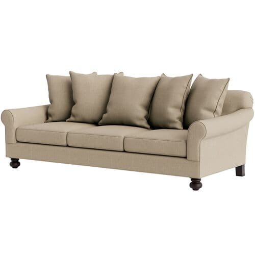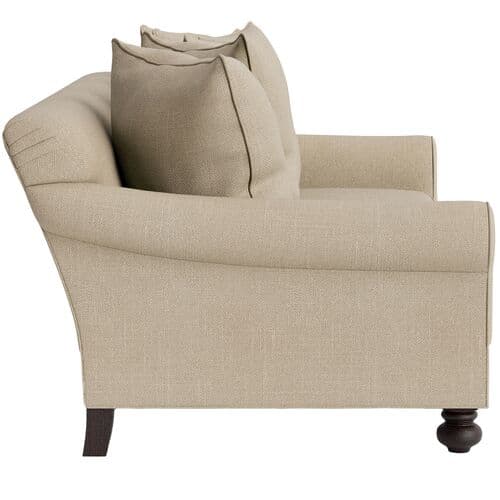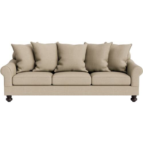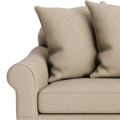 Featuring an elegant silhouette, the Logan Sofa offers graceful lines and generous proportions. Crafted in the US from kiln-dried hardwood by skilled artisans, it showcases a turn-of-the-century style updated for contemporary spaces. Loose pillow backs, deep seating, and rolled arms provide tailored comfort. The upholstery is designed for durability and ease of care, maintaining a refined finish. The heavyweight linen blend weave offers textured comfort and breathability for a relaxed yet sophisticated look. Of note: • Sustainably sourced hardwood is replenished over twice the harvesting rate. • Certified by environmental organizations like the Sustainable Forestry Initiative. • Upholstery features Eco Performance® technology for better durability and cleanliness without PFAS. • Fire-safe ticking and a 50/50 mix of down feathers and polyester fibers. • Assembled by hand in the USA.
