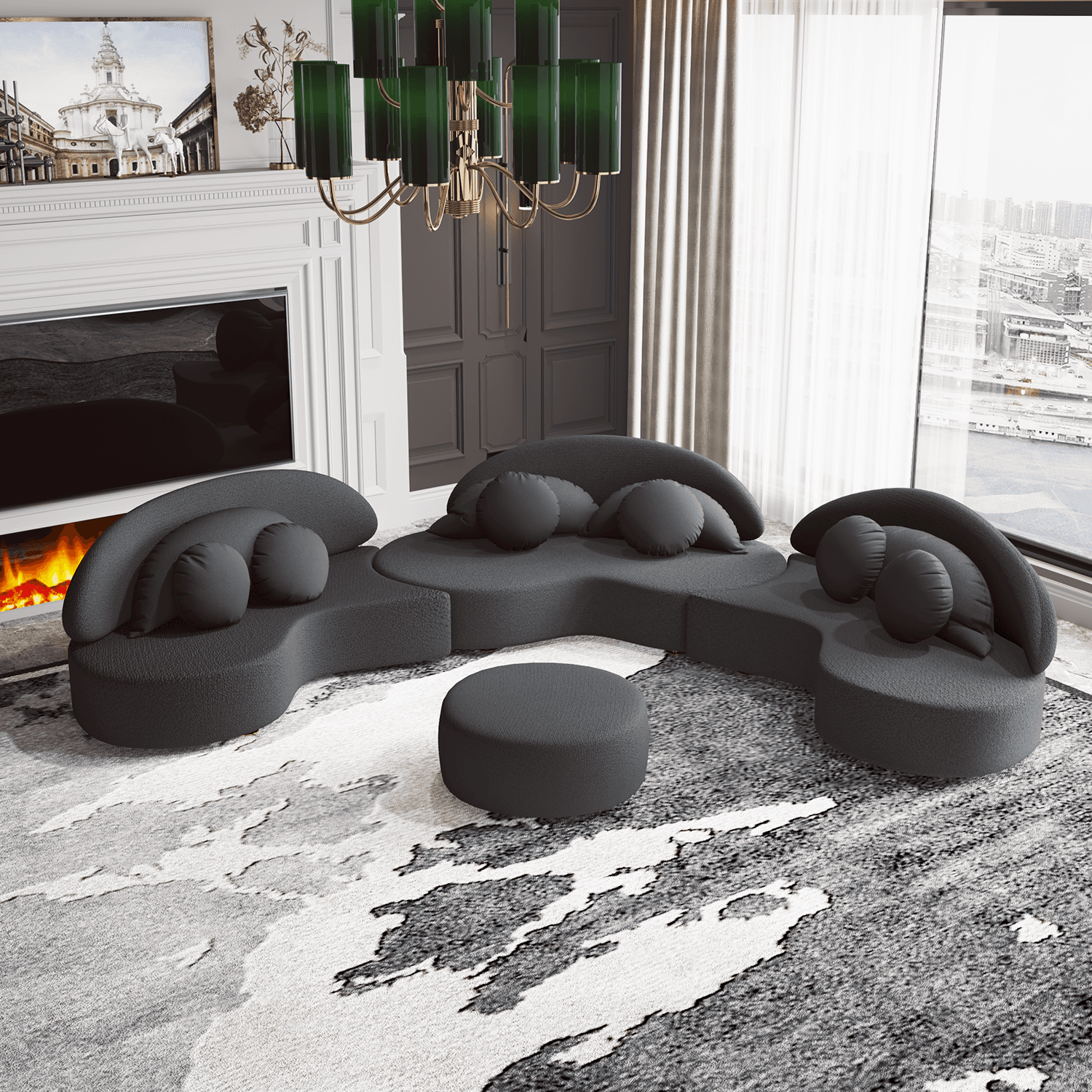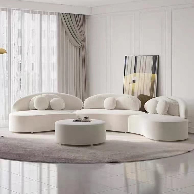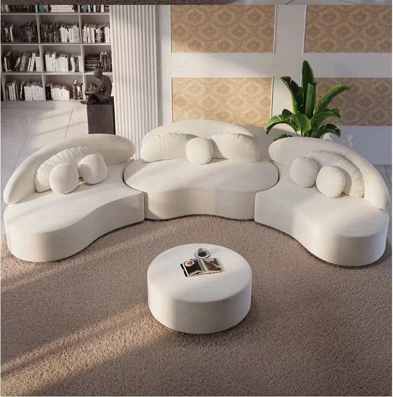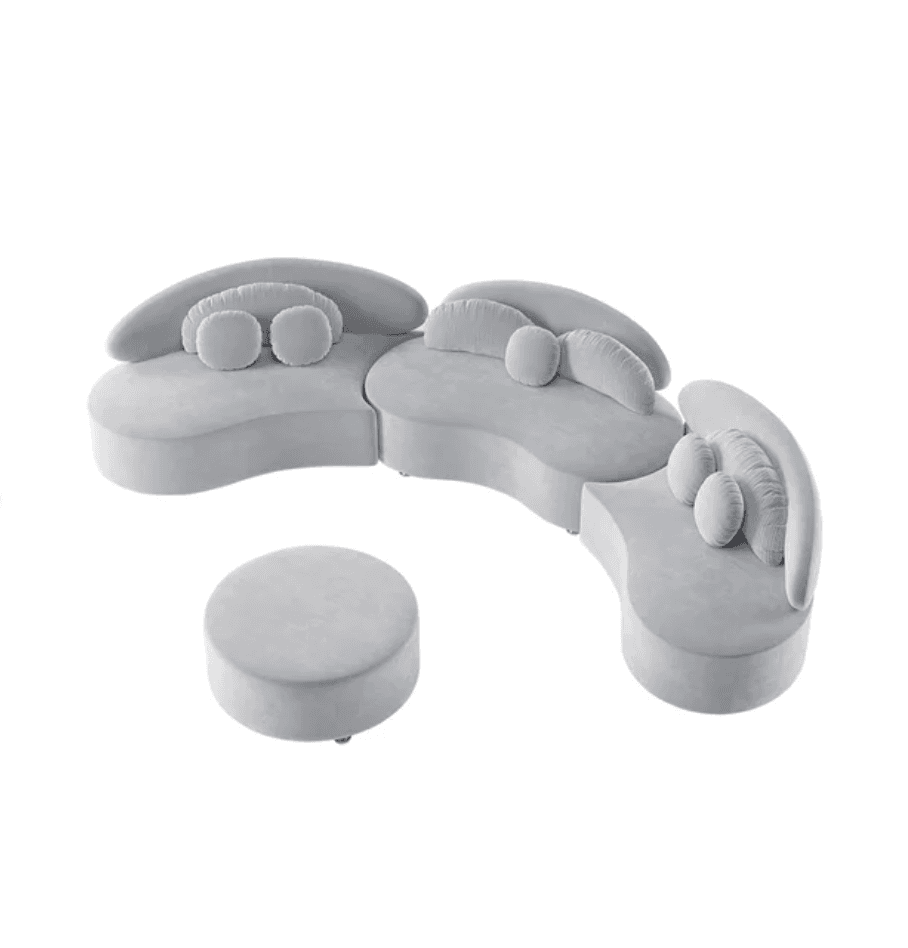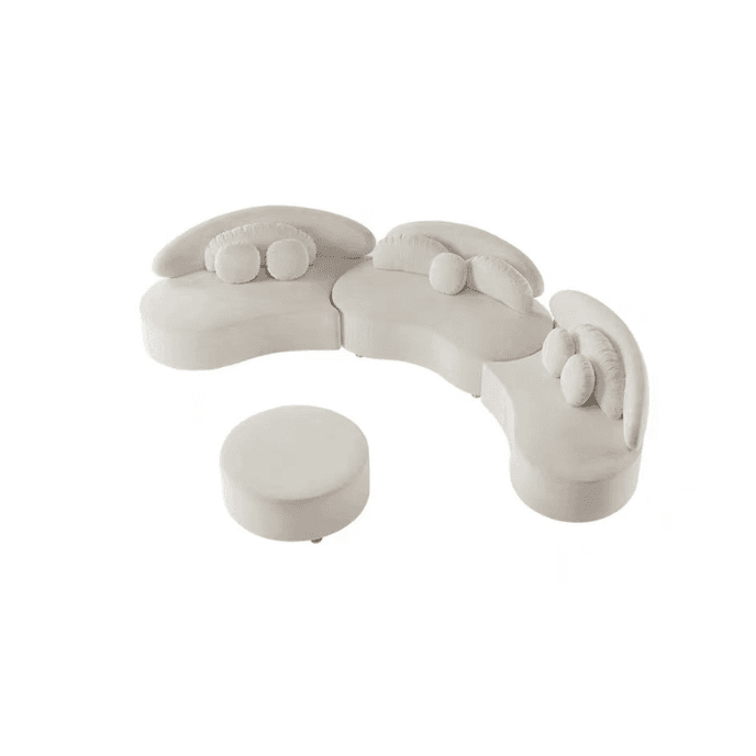 Ghita Velvet 3 Pieces Curved Modular Sofa Set with Ottoman