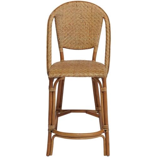 The Alanis Counter Stool by Sika Design updates the popular bistro-style Sofie stool with elegance. Its redesigned profile is enhanced by a detailed herringbone weave on the back, arms, and seat. The stool is handcrafted from sustainably sourced Indonesian rattan, featuring a waterfall front seat and footrest for enduring comfort. Perfect for bistro dining at home, cafes, or restaurants, it offers a subtly upscale appearance.