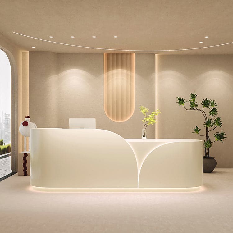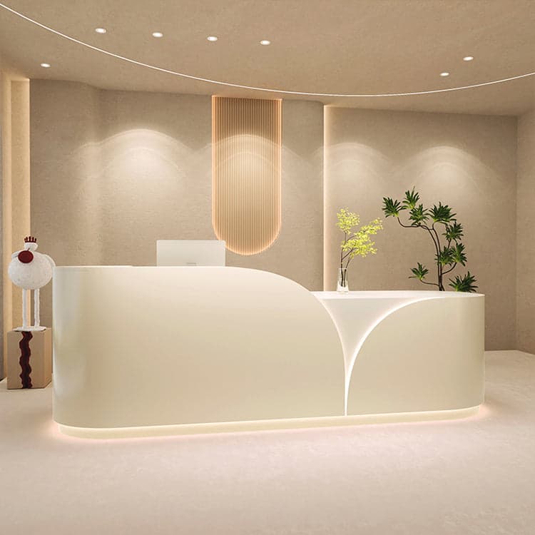 The reception desk, made from eco-friendly and healthy boards, is uniform, crack-resistant, waterproof, and moisture-proof. Upgraded and thickened, the material is solid, hard, and wear-resistant, with strong load-bearing capacity and durability. This cost-effective reception desk is versatile, perfect for shopping malls, clothing stores, offices, and milk tea shops. Available in various colors and sizes, there's always one to suit your needs.