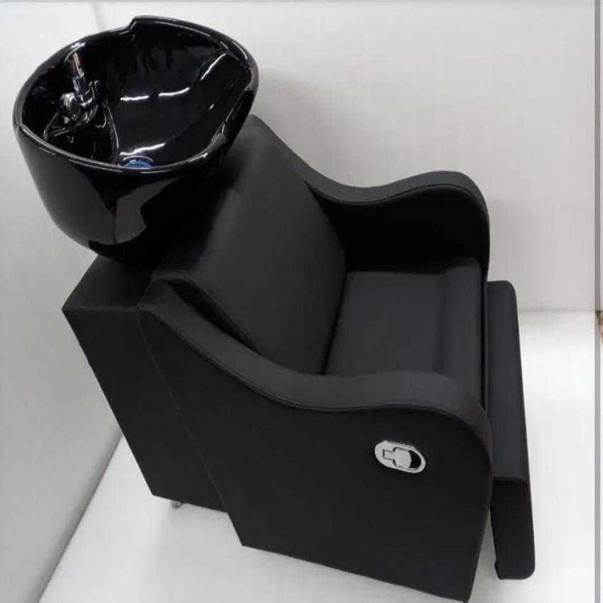 Black Synthetic Leather shampoo station hair wash chair, For Parlour, With Footrest