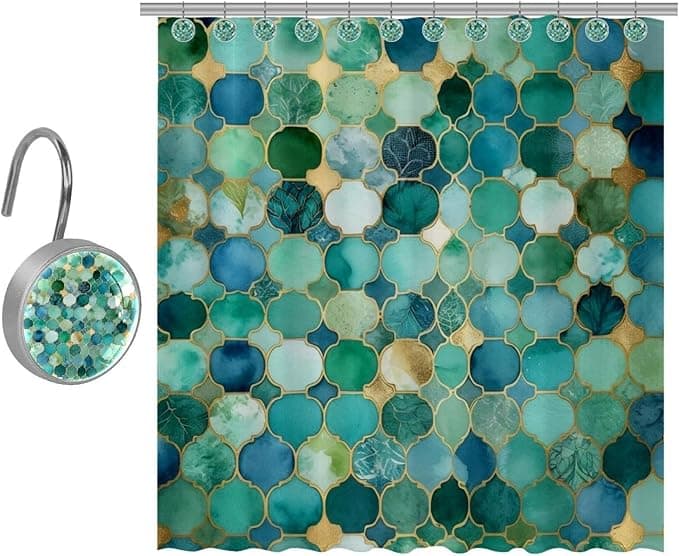 Shower Curtain Sets with 9 Curtain Hooks, Waterproof & Washable Mermaid Turquoise Green Abstract Shower Curtains for Bathroom, 36x72 Inches