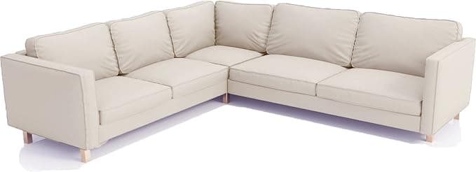 Polyester Karlstad Corner Sofa Cover (2+3/3+2) Replacement, is Custom Made for IKEA Karlstad Sectional Slipcover Replacement (Beige Polyester)