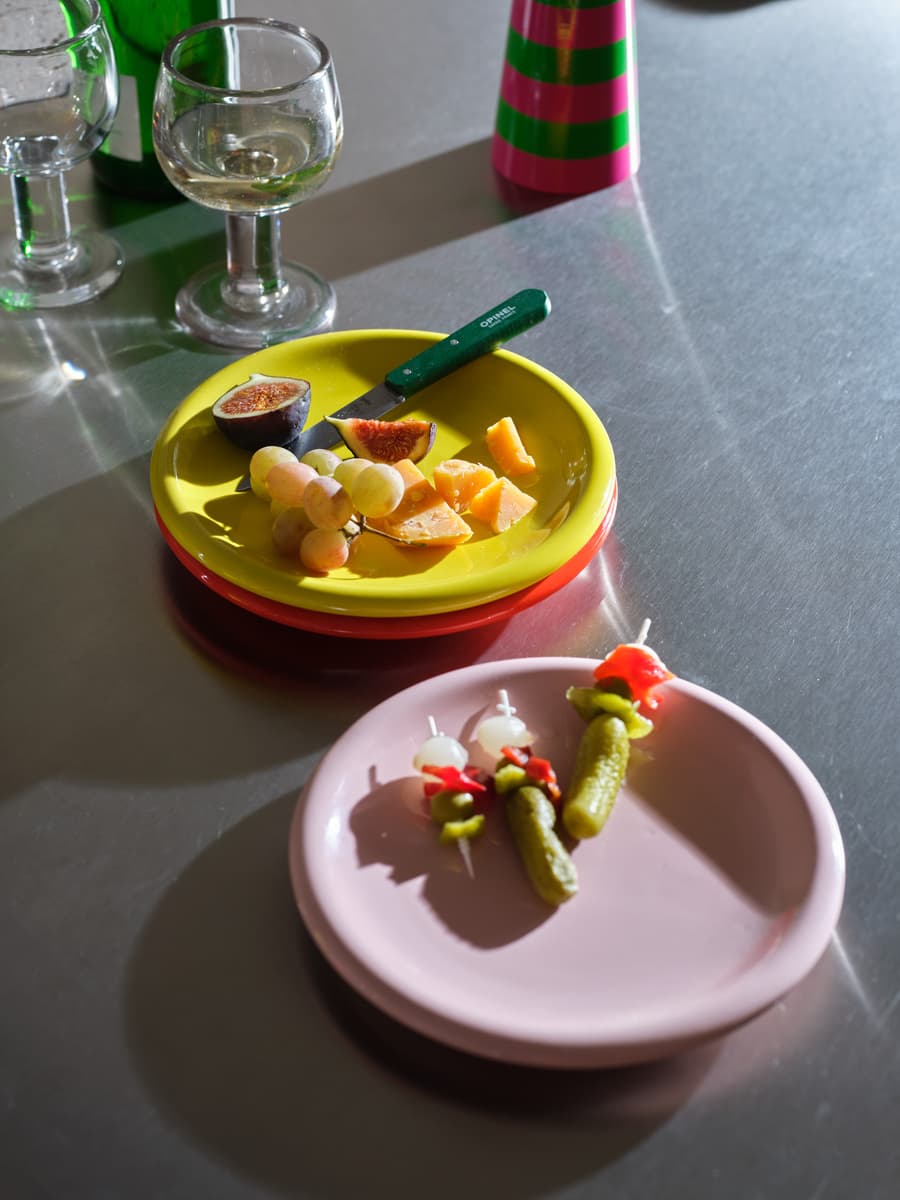 Hem's Bronto plate is part of a tableware collection that is not shy about its existence. Designed by Supergroup, the plate has a recognizably bulky and chunky design – dinosaur-like, one might even say. So no wonder the ceramic dinnerware has actually got its name from the giant Brontosaurus! Exaggerated curves bring the glossy glazed plate to life and vibrant colors put a smile on your face at the breakfast table or when serving desserts. The package contains two plates.