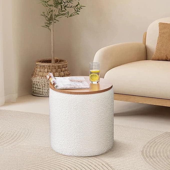 Buy Zibeths Round Boucle Ottoman with Storage, Sherpa Storage Ottoman with Wood Lid, Small Round Foot Stool Pouf for Living Room, 16" Wide, Beige: Ottomans - Amazon.com ✓ FREE DELIVERY possible on eligible purchases
