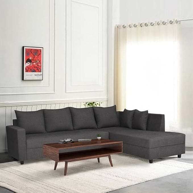 FURNY Lavinoy 6 Seater Fabric Sectional RHS L Shape Sofa Set (Grey)