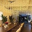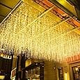 JAMISAY LED Icicle Lights, 8 Modes 19.7FT 150 LEDs Christmas Short Curtain Fairy Hanging Ceiling Extendable Lights for Wedding Balcony Doorway Outdoor Indoor Decoration Warm White, 6M05
