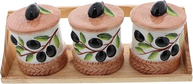 This is a wood rack with 3 ceramic cannisters with lids. Great for teacher appreciation gift or rustic and farmhouse decor. Can easily store coffee, tea, sugar or other condiments. Each holder measures approximately 3.5x3.5 inches and the stand measures 12.25 inches across.