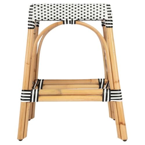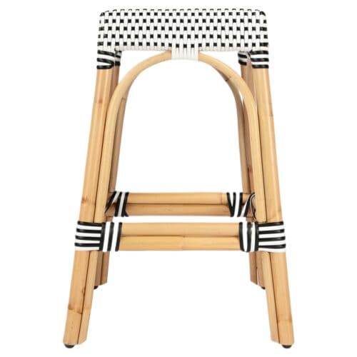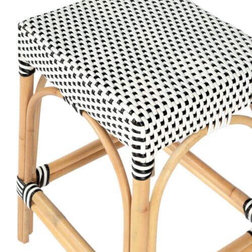 Evoking images of sidewalk tables in the Cote d'Azur, these counter stools will bring the casual sophistication of a Mediterranean coastal bistro to your kitchen, dining area, or covered patio. Expertly crafted from thick bent rattan for superb durability, they feature weather-resistant woven plastic to complement your space. These backless counter stools are lightweight for easy mobility, ensuring comfort and making any space they're in a frequent gathering place.