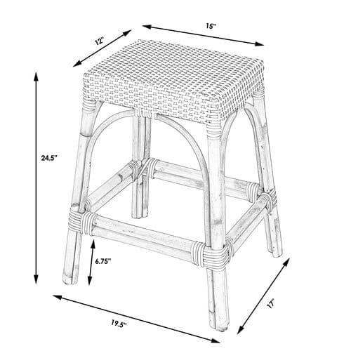 Sabrina 24.5" Rectangular Rattan Counter Stool | Bar Stool, Kitchen Stool - Black