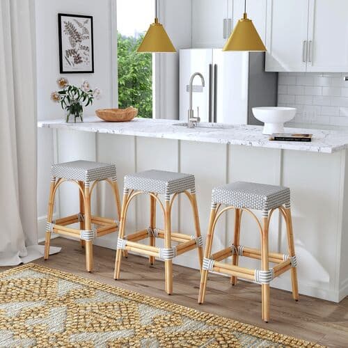 Sabrina 30" Rectangular Rattan Bar Stool - Gray