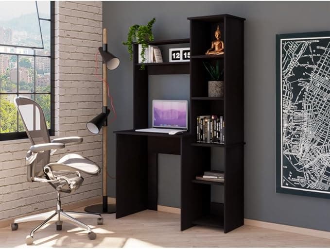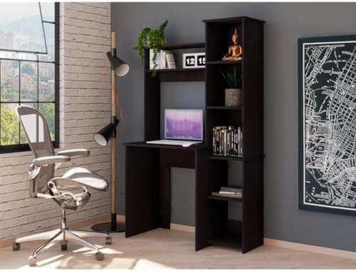NicBex Office Desks Contemporary Writing Desk with a Hutch and 5 Shelves Modern Aesthetic Home Office Desks Computer Desk with Storage Study Table for Living Room, Home Office, Study Room, Black