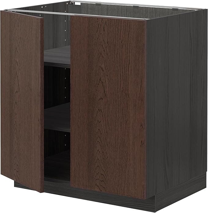 METOD Base Cabinet with Shelves / 2 Doors, 80 x 60 cm, Black/Sinarp Brown