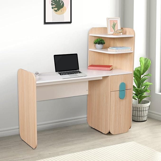 Smartsters Engineered Wooden Study Table for Students & Adults, Office Study Table with Storage, Infinity Study Table with Shelves, White, 47X48X18 Inches. Study Table for Adults (Chair Not Included)