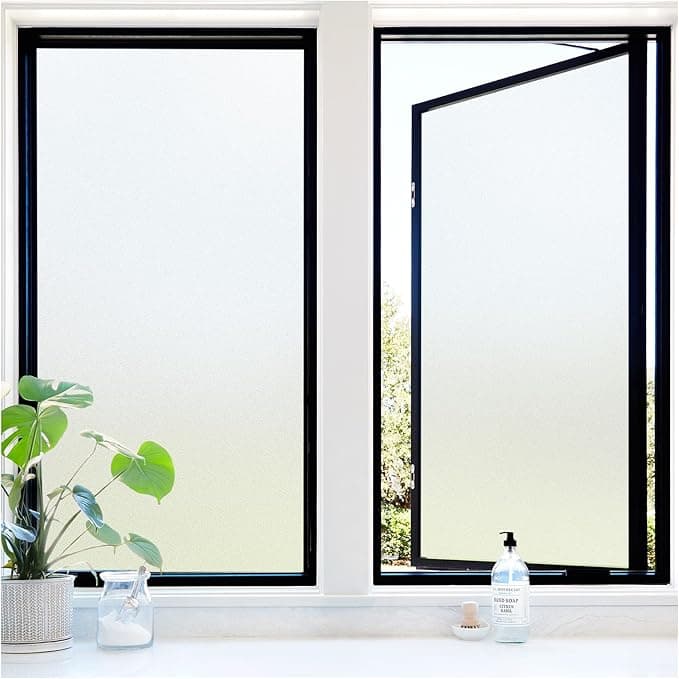 Privacy Without Compromise: Achieve the perfect balance between privacy and natural light with our frosted privacy window film. It gives your glass a high quality frosted appearance, blurring the view while still allowing sunlight to pass through. Perfect for rooms that need privacy without darkening it. UV Protection: Based on the specific UV-Protected PET layer, this window frosting film effectively blocks out 84% UVA rays and 99% UVB rays. Protect your skin from sun exposure and prevent your furniture from fading, while also reducing glare to create a more comfortable environment for living or working. No Glue Hassle: The adhesive-free design allows for easy removal of this peel-and-stick window film multiple times without leaving any sticky residue. It also works well on any flat, smooth, and clean glass surface, making it an excellent choice for renters or those who enjoy frequently changing room decor. Grid Line Backing: Features an innovative grid line backing design for easy measuring and straight cutting. There are two different grid sizes of 0.4" and 0.8" wide. No need to draw lines—just cut. Ensures quick and precise application without the need for professional installation. Tips for Installation: Make sure you have already removed the backing film before applying. It is also important to thoroughly clean the window surface, edges and corners without any dust. Remember to spray plenty of water on both the window surface and the back of the film. The more water, the better.