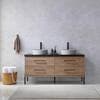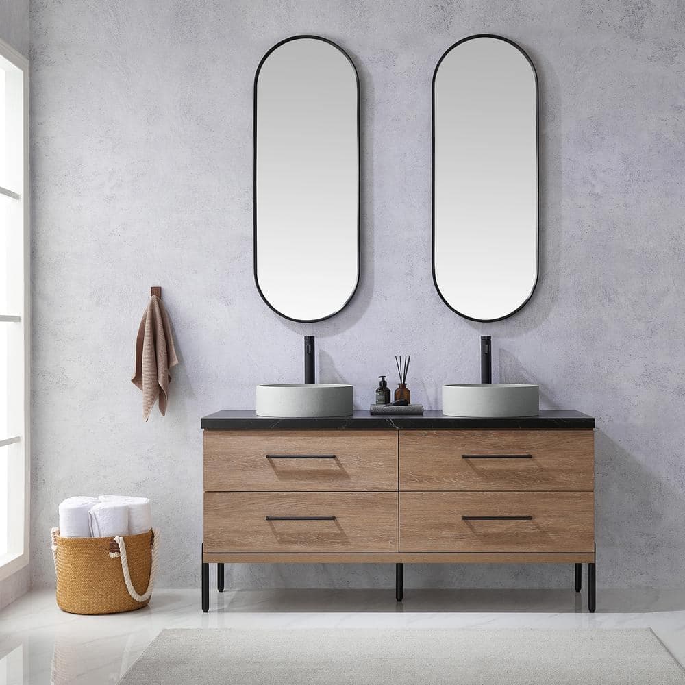 ROSWELL Trento 60 in. W x 21.7 in. D x 34.6 in. H Double Concrete(C) Sink Bath Vanity in North Oak with Black Sintered Top