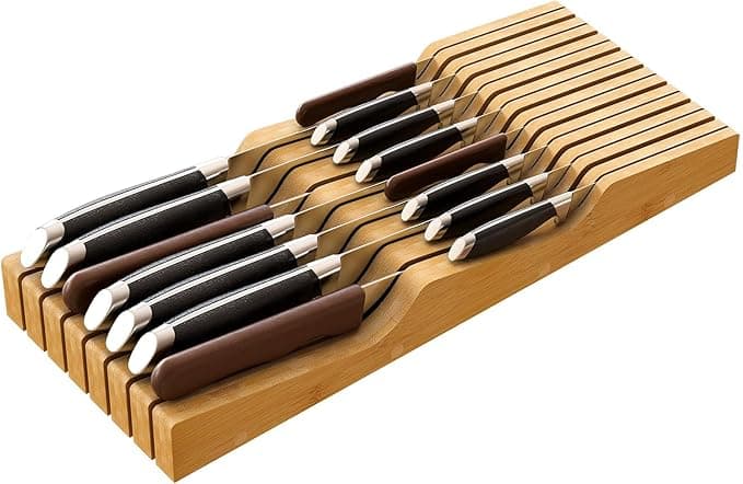Organizer per coltelli da cucina, portacoltelli, organizer per cassetti per coltelli in bambù, blocco coltelli senza coltelli, adatto per 15 coltelli