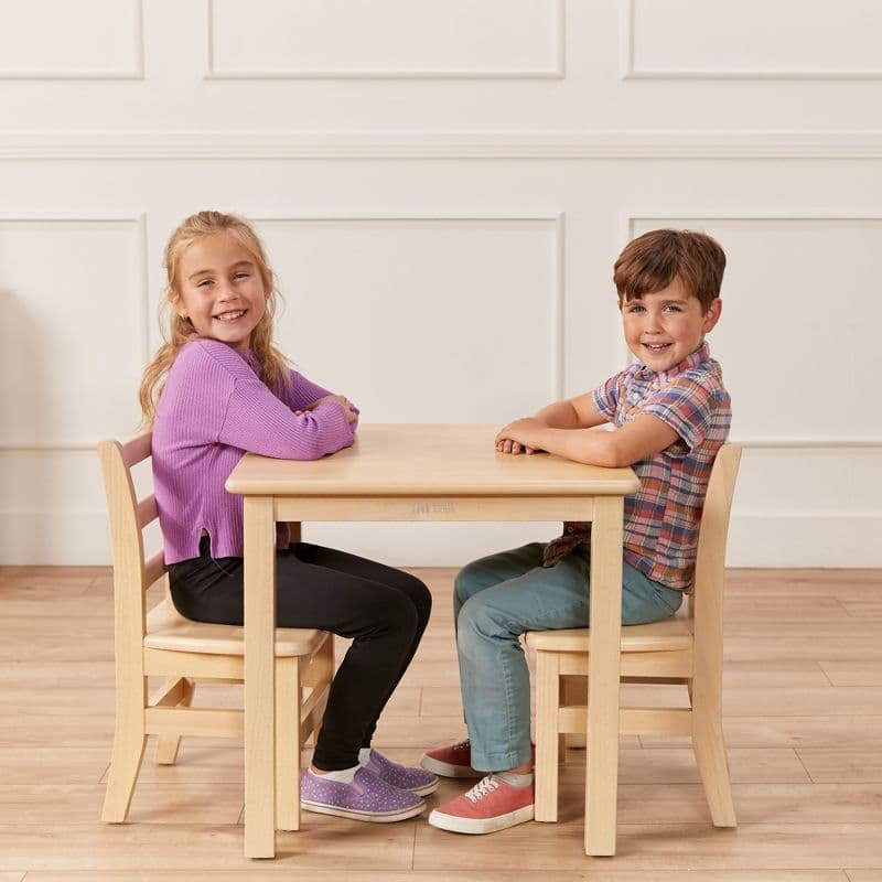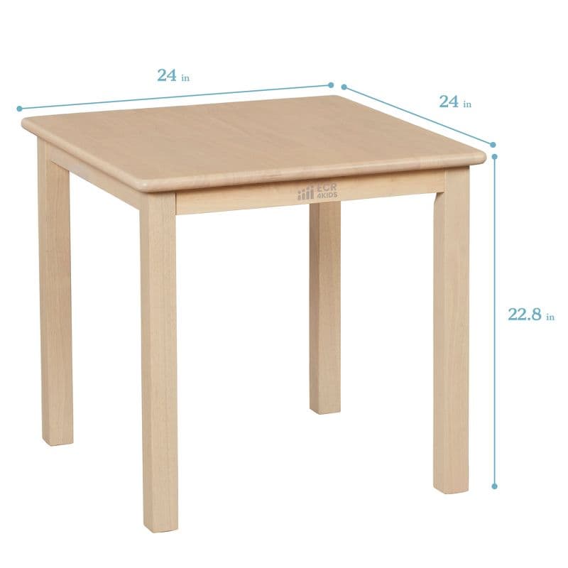 Enhance any classroom, playroom, or daycare with ECR4Kids 24” Square Hardwood Table, designed for use by children. This child-sized table is more than a piece of kids' furniture, it's a tool that fosters student confidence and independence. Providing a dedicated workspace encourages young learners to focus and cultivate positive work habits. This activity table is ideal for a range of activities like arts and crafts or collaborative learning projects. It's crafted with child safety and inclusivity in mind, integrating seamlessly into Montessori and Waldorf settings to enrich educational and play areas. Little ones take ownership of their learning in a kid-sized environment, where tables appropriately sized let them enjoy books, snacks, or seated rest in comfort and confidence. Constructed from rubberwood with a durable finish sealing the wood surface and resisting scratching. A UV inhibitor helps furniture resist ultraviolet light and yellowing. Table legs feature non-marring nylon glides to protect floors from scratching and scuffing. Pair with ECR4Kids Three Rung Ladderback chairs for the most comfortable school or home set-up; sold separately.