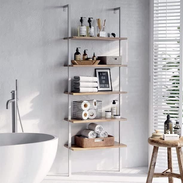 Karl home Estantería de escalera de 5 niveles para montar en la pared con marco de metal, estantes de diseño abierto para sala de estar, dormitorio, hogar, oficina, color roble (23.62 pulgadas)