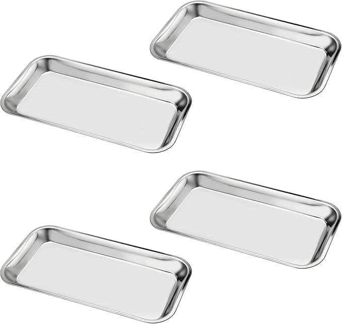 4 Pezzi In Acciaio Inox Vassoi per Strumenti, Vassoio Rettangolari Piastra Forniture per Strumenti di Laboratorio, Piccolo Vassoio per Strumenti per Laboratorio Tatuaggio Organizzatore per Bagno
