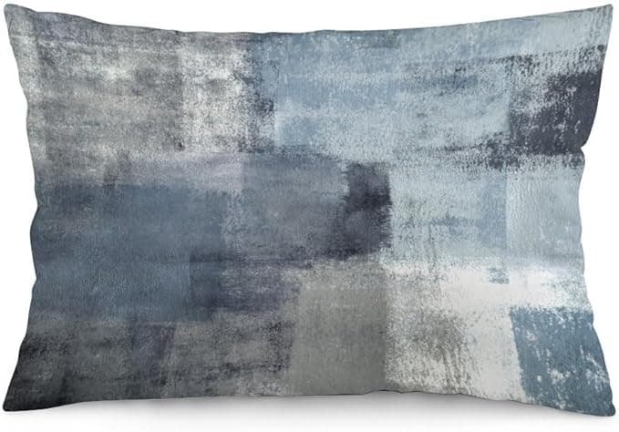 Grey Blue Abstract Art Painting Throw Pillow Cover Queen Size Blue White Gray Lumbar Pillow Case Modern Soft Pillowcase Standard Pillow Cases with Zipper Decorative Cushion Cover for Bed,Sofa,20"x30"