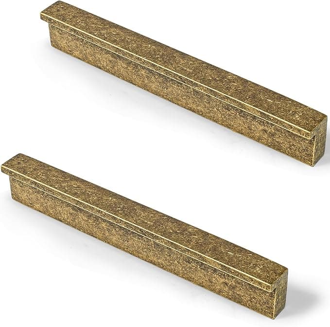 Our products are available in three sizes, M (4.3 inches length, hole centre: 3.8 inches), L ( 6.3 inches length, hole centre: 5 inches), XL (7.5 inches length, hole centre: 6.3 inches), and there are also antiques brass and brown bronze two vintage colors to choose from. Installs in seconds with a simple manual or electric Phillips head screwdriver. Pre-drilled holes help maintain surface integrity. These tab pull handles are suitable for cabinets, wardrobes, cupboards, drawers, dressers, doors and wardrobes. You can remodel your house by yourself. The furniture pull is a heavy duty cabinet pull, made of high quality brass and vintage antique brass color, suitable for a wide range of furniture styles, strong and durable, not easy to rust.