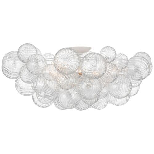 Artisanal glass elevates the Talia series by Julie Neill for a new take on the simple glass globe light fixture. Light shimmers through multiple swirled glass orbs attached to metal baskets, creating a whimsical flourish. Available in a range of sizes and configurations, the Talia series adds a dynamic mix of sparkling glass, rounded forms, and bright metals to any interior. Choose a chandelier for entryways and dining areas, flush-mounts or wall sconces for living spaces or bedrooms, and add a playful, feminine touch to any space.