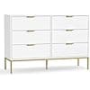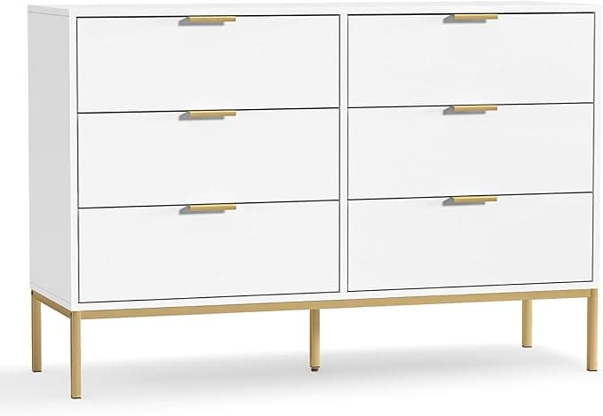 Anmytek Cómoda moderna de 6 cajones, cómoda blanca para dormitorio, cómoda, organizadores de armario y ropa de almacenamiento de madera, cómoda blanca con asas doradas para sala de estar, pasillo