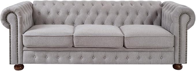 Buy Chesterfield Sofa, Upholstered Linen Sofa with Button Tufted and Nailhead Trim Design, Classical Tufted Couch with Rolled Armrests and Solid Wood Legs, 3 Seater Couch for Living Room: Sofas & Couches - Amazon.com ✓ FREE DELIVERY possible on eligible purchases.