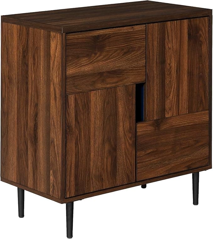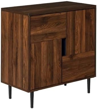 WalkerEdisonFurniture Company Modern Color Pop Buffet Accent Entryway Bar Cabinet Storage Entry Table Living Room Dining Room, 30 Inch, Walnut Brown, Navy Interior
