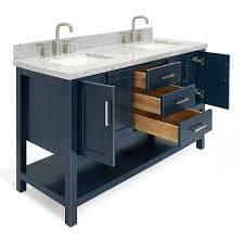 ARIEL Magnolia 61-in Midnight Blue Undermount Double Sink Bathroom Vanity with White Marble Top S061DCWRVOMNB at Lowes.com