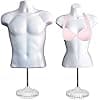 White Male & Female Hollow Back Mannequin Torso Set w/ Stands with Metal Pole, S-M Sizes