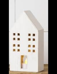 White Distressed Wooden House with Light Hole, Medium - The Good Tree