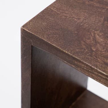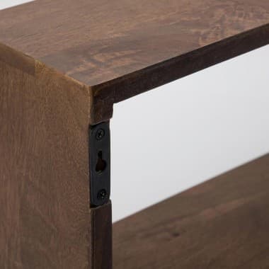 Estantería de pared de mandera de mango con un acabado marrón que resalta su maravillosa estructura y la calidez de la madera. Una opción de almacenamiento adicional ya que no te ocupara espacio en el suelo. Su proceso de fabricación es 100% artesanal, por lo que pueden darse variaciones en la tonalidad respecto la imagen. Incluye anclajes para una correcta colocación. No requiere montaje.