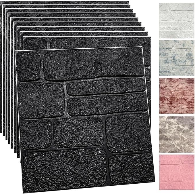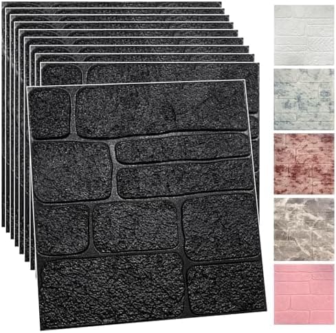 YU LI 3DH 3D Wall Panels Peel and Stick Faux Stone Wall Panel Black 20-Pack Faux Brick Self-Adhesive Wallpaper 3D Foam Brick Wallpaper