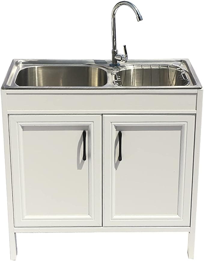 Fregadero de acero inoxidable para cocina y fregaderos industriales, fregadero de doble tazón con gabinete con escurridor, preparación de cocina comercial y fregadero utilitario para interior de garaje y patio trasero (color : azul