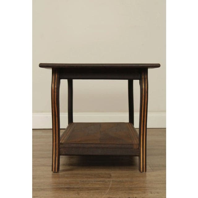 High Quality Vintage Art Deco Style Exotic Wood Inlaid and Smoke Mirror Top 2 Tier Coffee Table