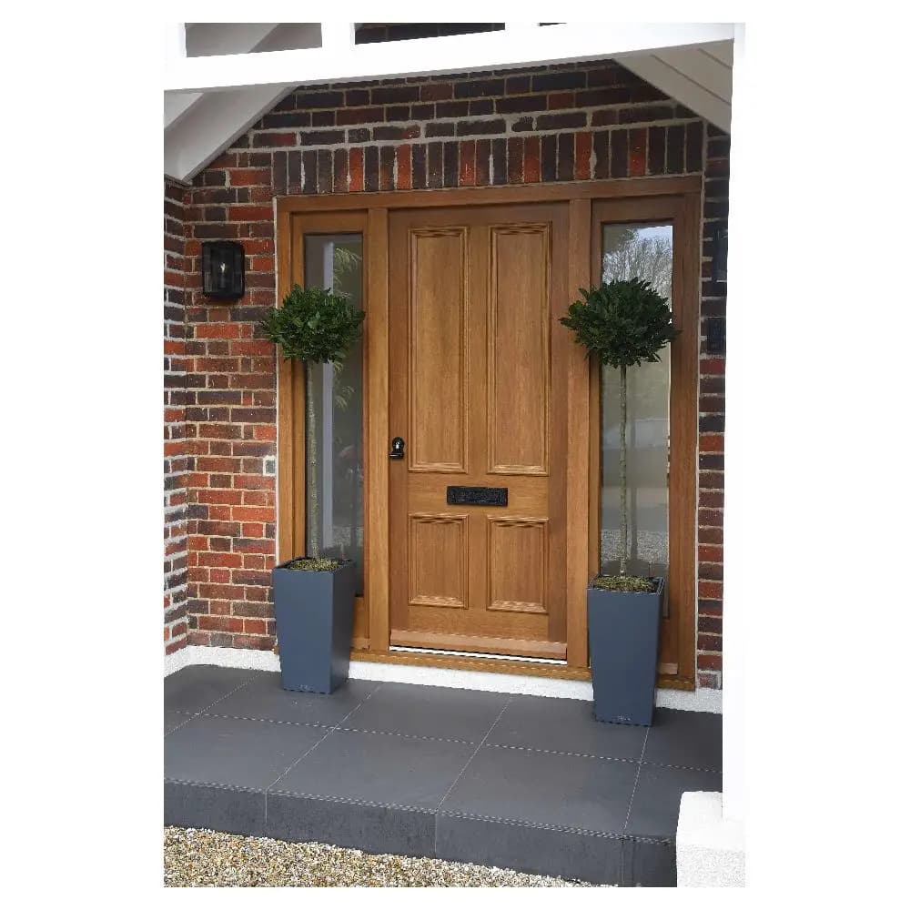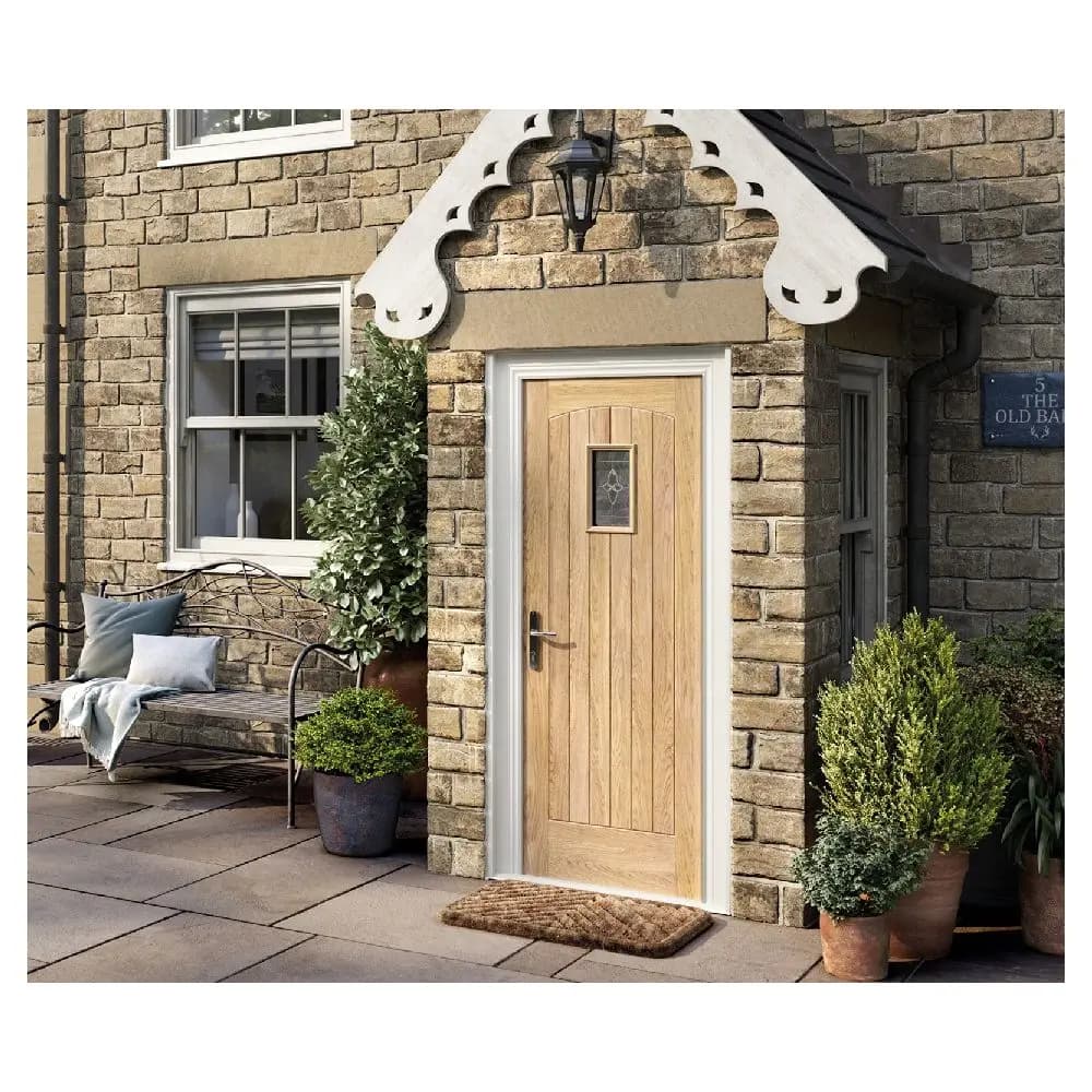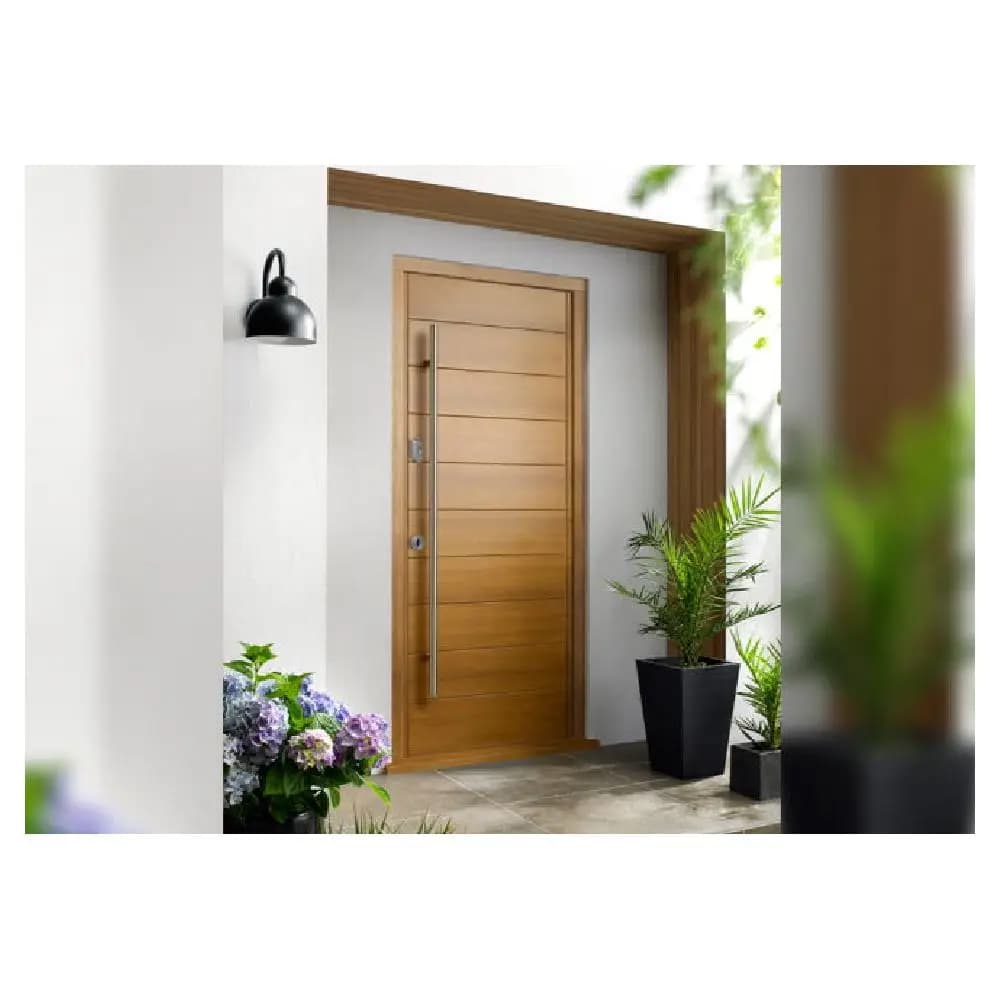 Solid wood exterior double doors (Wooden door) made of solid wood + plywood + glass + painting. Finished surface (veneer + painting). Glass options include Low-E, tinted tempered, OBS glass. Lead time ~45 working days. Warranty: 5+ years. Packing: foam + carton (or wood carton/plywood box for extra fee). Sample price $25/sq.m. Seller offers customization and after-sales services (onsite inspection, online technical support, onsite training, onsite installation, free spare parts).