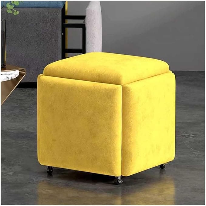 Taburete otomano anidado de Cubo 5 en 1, reposapiés, Silla de sofá apilable, con Ruedas, para Dormitorio, Sala de Estar, Comedor, Oficina