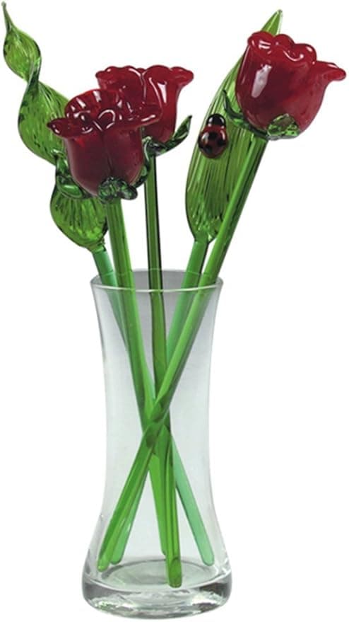 Red Co. Ramo de flores decorativas de cristal encantador con jarrón, caja de regalo - Rosas rojas