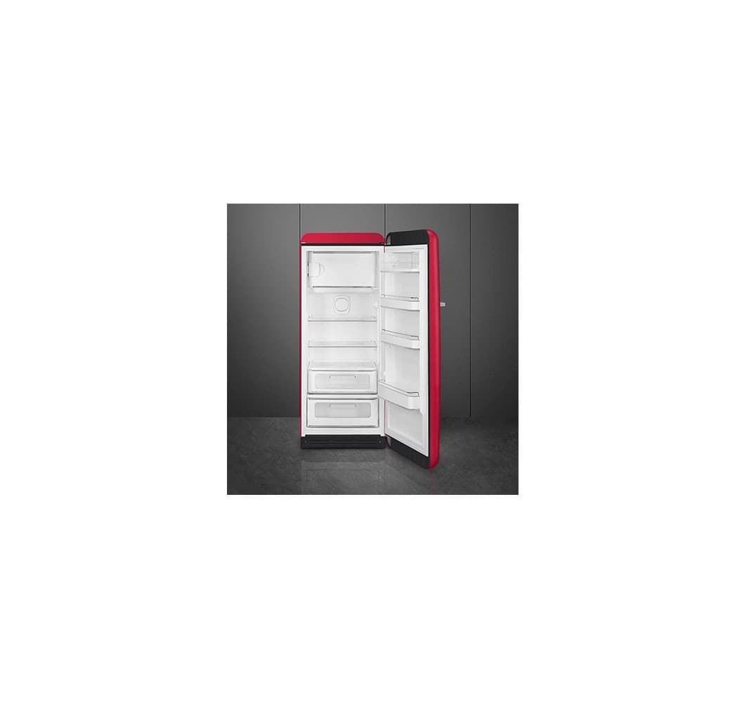 The FAB28RDRB5 is a 50 cm SMEG 50'S Style refrigerator in a vivid ruby red. This stylish free-standing refrigerator is the smallest model in our 50'S Style line, but it is still full of functionality and fine details. The interior features a bottle compartment, a removable vegetable shelf and a fruit drawer. The temperature inside the fridge can be adjusted from +2 °C to +8 °C, while the freezer can be set between -18 °C and -22 °C. The Smeg FAB28RDRB5 also has an automatic defrost function that prevents ice from forming inside the freezer.