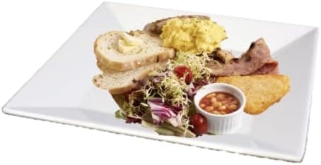 KMI Catering Cafeteria Buffet Square Plate Made by Melamine, White, 8-1/2” X 8-1/2”, WB Series (10)