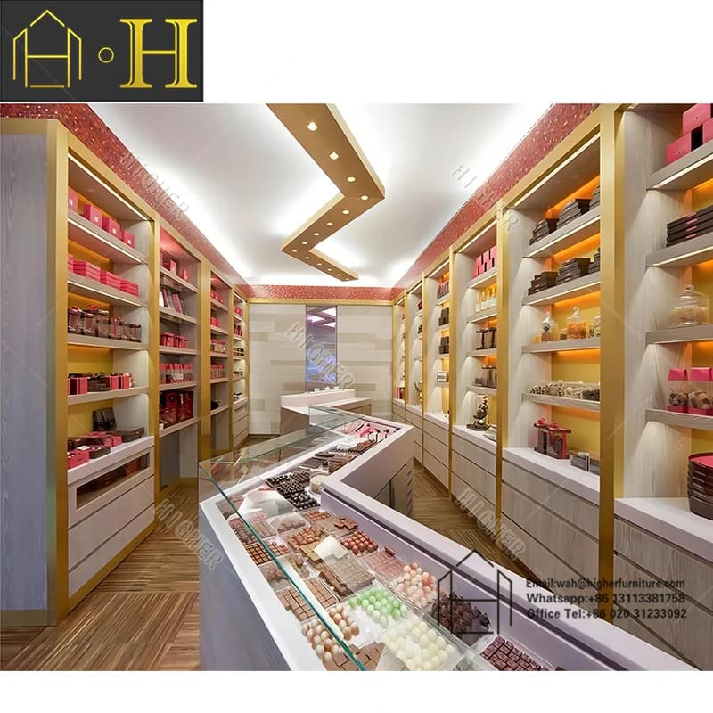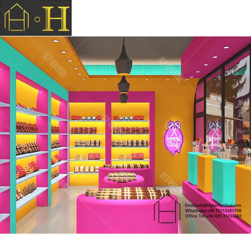 Customizable Design: Our candy shop interior design chocolate bar furniture is tailored to meet your specific needs, allowing you to create a unique and personalized display for your lollipop store. We offer customization options for size and color to ensure a perfect fit. All-in-One Service: As a manufacturer, we provide an all-in-one service, including design, measuring, final installation, and warehousing, making it convenient for you to set up your candy shop. High-Quality Materials: Our product is made from high-quality materials such as ply, MDF, solid wood, glass, stainless steel, and LED lighting, ensuring durability and a luxurious look. Competitive Pricing: We offer competitive pricing through our direct sale, allowing you to save costs. Payment terms include 50% deposit before producing and 50% balance before loading. Local Services: As a local service provider, we offer fast and efficient delivery, ensuring timely installation and minimizing transportation costs for our valued customers.