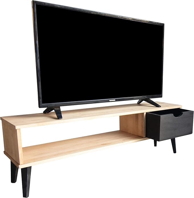 LoMasCasa - Mueble Televisión Salón Modelo Koke 4 En Madera Maciza de Pino Natural Ecológica Todo Madera con un Cajón y Patas en Color Negro Medidas 120x30x41,50 cm