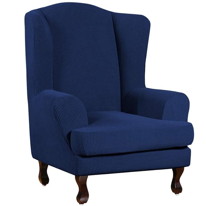 Turquoize Wingback Armchair Chair Slipcovers Spandex Jacquard Sofa Covers Stretch Wing Chair Slipcover 2-Piece Spandex Fabric Wing Back Wingback Armchair Chair Slipcovers(Wing Chair, Navy)
