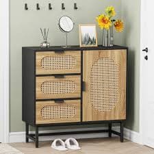 Bay Isle Home™ Storage Cabinet With Handmade Natural Rattan Door And And 3 Drawers, Rattan Sideboard Cabinet, Buffet Cabinet For Living Room, Dining Room, Hallway, Kitchen, Entryway | Wayfair