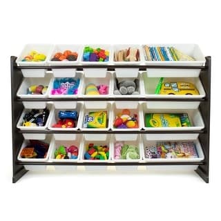 Get the playroom organized with the Humble Crew Espresso XL Toy Storage Organizer with 20 Storage Bins. This four-tiered organizer has 20 BPA and phthalate-free storage bins, offering 40% more storage than other organizers. It is perfect for organizing your little one's toys, books, and games, and is versatile enough for use in any room of the house. The organizer is made with sturdy engineered wood construction and each level can hold up to 20 pounds.