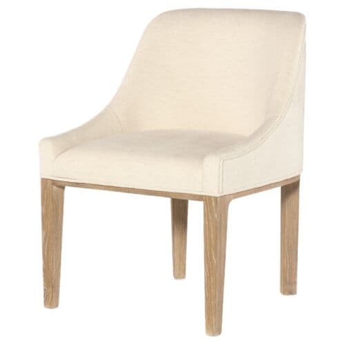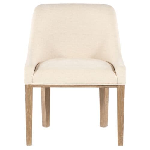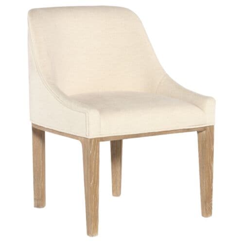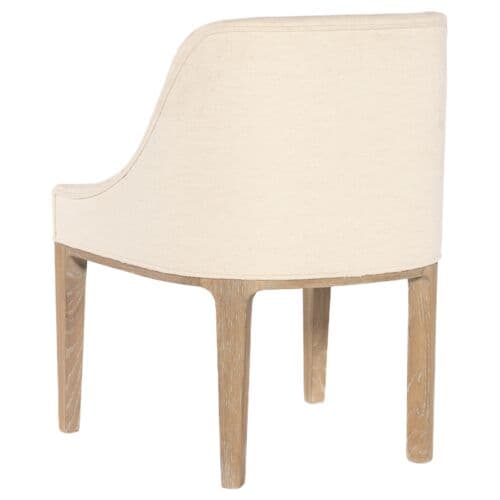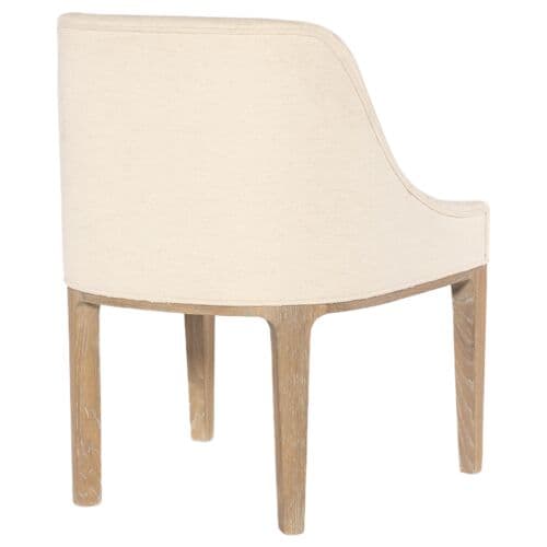 The Upholstered Host Chair is a stylish and comfortable addition to any dining room. Fully upholstered with a barrel-shaped back and sloped arms, this chair is both supportive and elegant. Perfect for the head of the dining table or as accent seating in a living space.