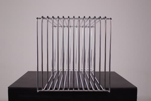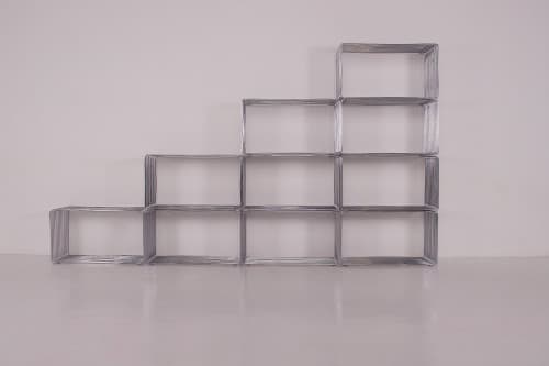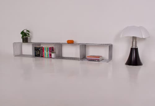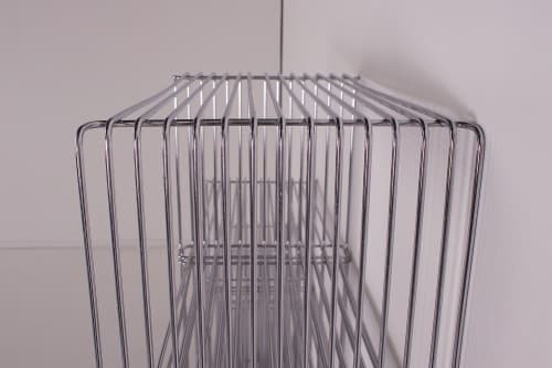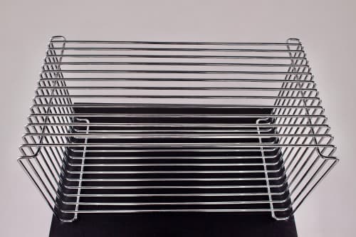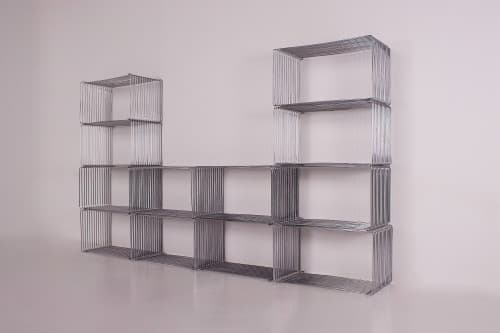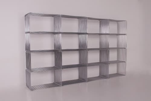 Sistema modulare di scaffali/librerie, con vani rettangolari in filo di acciaio cromato. Verner Panton per Fritz Hansen, Danimarca, edizione anni '70. Dimensioni di un'unità: L 60 CM X P 33 cm.